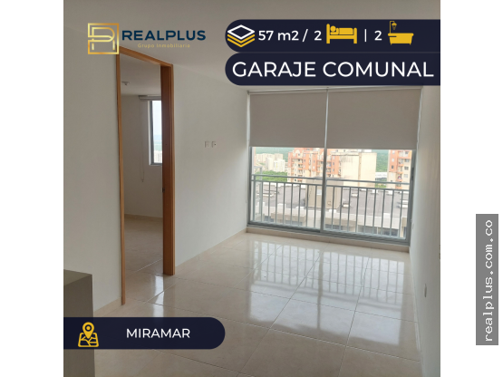 Moderno apartamento piso alto con cortinas. Consta de sala - comedor, 2 alcobas cada una con baño, estudio, cocina integral, zona de labores. El conjunto cuenta con ascensor, piscina, salón social, parque infantil, zona BBQ, cancha, lobby, vigilancia privada 24 horas, garaje comunal. CANON INCLUIDA ADMIN.